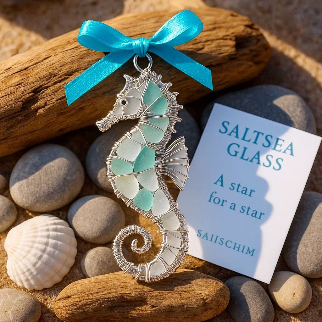 🛠️ Each ornament is carefully handcrafted by artisans: every piece of natural sea glass has been shaped over decades by rolling tides into its soft, frosted matte finish, while the silver wire is wrapped, secured, and sculpted entirely by hand.